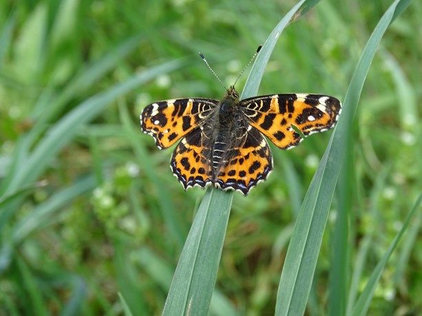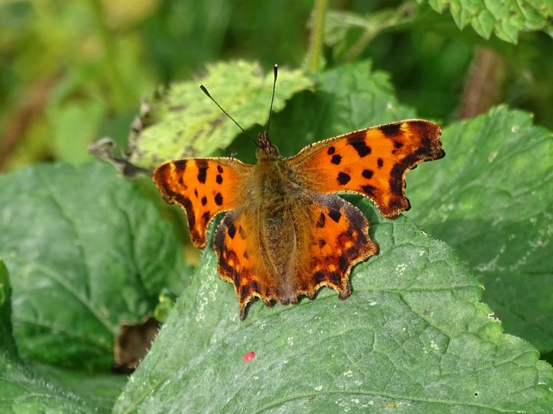 De gehakkelde aurelia is te herkennen aan zijn gekartelde vleugels en de witte letter C op de onderkant van zijn achtervleugel.