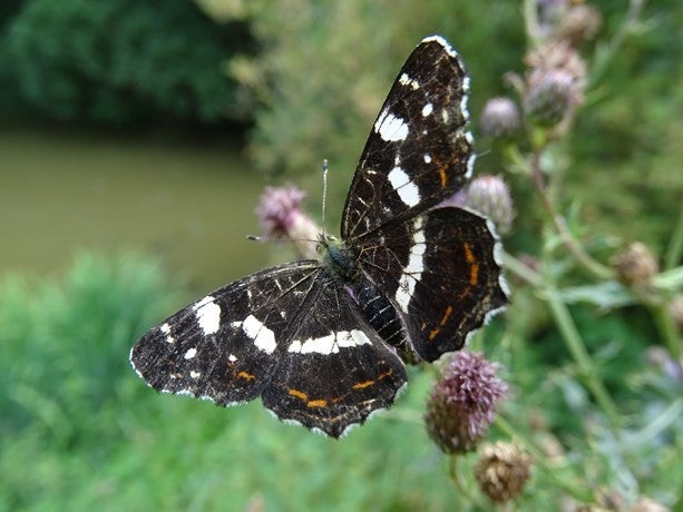 Foto's onder: Het landkaartje van de zomer generatie is aan de bovenzijde zwart met een witte band. De onderzijde heeft een prachtig patroon van kleuren en lijntjes en daaraan heeft de vlinder haar naam te danken